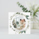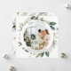 O moderno cartão de natal fotográfico apresenta saudações de Paz, Amor e Alegria com bagas e folhas de fotografia e botânica.