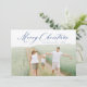 O moderno minimalista design de cartas de Natal alegre apresenta um elegante roteiro de Natal alegre em cor azul, com fotos personalizadas da família, simples e únicas.
