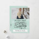 Texto preto que diz "Desejamos a Você um Feliz Natal" na frente e "e um Feliz ano novo!" nas costas com um fundo aqua macio, flocos de neve brancos e cervejeiros de silhueta, e áreas onde você pode adicionar seu nome de família e foto em um cartão de cartões de natal de Natal que você certamente quer enviar para a família e amigos!