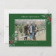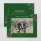 Cartão de Feriado de Natal Holly Verde. Um design simples e elegante, com colina e bagas de Natal e uma foto com mensagens que você pode personalizar. Na parte traseira do cartão está uma mensagem personalizada que você pode personalizar.