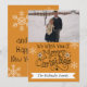 Texto preto que diz "Desejamos a Você um Feliz Natal" na frente e "e um Feliz ano novo!" no verso com um fundo laranja, flocos de neve brancos e cervejas de silhueta, e áreas que você pode adicionar seu nome de família e foto em um cartão de cartões de natal de Natal que você certamente quer enviar para a família e os amigos!