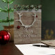 Mande desejos calorosos com nossos belos cartões de natal de veados. Perfeito para um Natal confortável e rústico. Martelos festivos adorados com enfeites de natal sobre um fundo de madeira rústica com pivete atrás. Basta adicionar seu nome, endereço e cartões de natal da família.