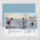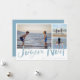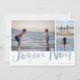 Cartão de design de praia "Joyeux Noel" para colagem de fotos da família 3. Personalizado com três das suas fotos favoritas, saudação e nome de família.