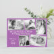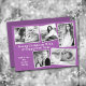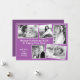 Grande família, cartão de feriado de colagem fotográfica, roxo claro, com texto branco. Cinco modelos fotográficos - alguns angariados por interesse - são fáceis de personalizar com fotos de crianças, animais de estimação, novo bebê, fotos de férias ou o que você escolher. Escolha fotos com a mesma orientação para as formas de retângulo e escolha fotos de imagem central para o quadrado. Incluir duas linhas de saudação de texto e uma assinatura. O reverso também é roxo sólido numa sombra mais escura.