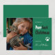 Este Cartão com fotos de estimação Holiday apresenta uma foto no lado esquerdo. Do lado direito, em tipografia branca e grande sobre fundo vermelho, a mensagem "Purrfect Christmas" (Natal perfeito).
