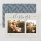 Cartões de foto de Natal russo e moderno com as bênçãos do texto em elegante e sutil guião de brilho dourado num fundo azul de cinza. A parte de trás do cartão tem um padrão de bagas festivas. Basta adicionar seu nome e fotos da família favoritas a este cartão de Natal maravilhosamente personalizado e enviá-lo para sua família e amigos! Desenvolvido exclusivamente para você pelo Happy Dolphin Studio.