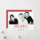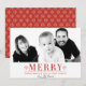 Um cartão de cartões de natal moderno com a palavra 'FELIZ' em negrito, vermelho, com flocos de neve e seus Cartões de natal. Um padrão correspondente de flocos de neve atrás. Personalize-o com a sua própria fotografia. A maioria dos elementos/tipos de design pode ser movida/alterada/excluída de acordo com sua escolha/preferência. Entre em contato comigo em sika_273@yahoo.com se quiser que o cartão tenha uma cor ou um tamanho diferentes. Obrigado por navegar!