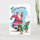 Um Papai noel dançante agita o chão com dois de seus elfos neste Cartões de natal alegre.