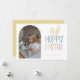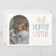 Cartão de Feriado de Foto de Páscoa Hoppy. Características, tipografia pastel com sotaque capilar, fotograma arquitetada e cor amarela de revestimento.