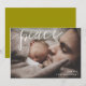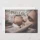 Este cartão fotográfico apresenta uma "paz" desenhada à mão. Personalize com seus próprios detalhes, fotos e cores de fundo. Mande um pouco mais de alegria nas caixas de correio dos seus entes queridos!