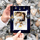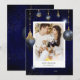 Cartão de férias com ornamentos de joias com fundo azul marinho e sotaques que criam uma aparência sofisticada de feriado. Verifique em nossa loja mais itens desta coleção.