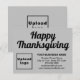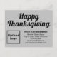 Feliz Dia de Ação de Graças! Um feriado para comemorar e obrigado pelas bênçãos que recebemos. É também um dos feriados para anunciar a sua empresa. Cartão de férias simples de pequeno porte que você pode personalizar para colocar sua marca de negócios e com a saudação de Ação de Graças. Personalize-o e use-o para saudar seus clientes ou clientes nesta Ação de Graças e como material de marketing para anunciar sua empresa ou promover seu nome de marca. Você também pode usá-lo como acessório do material de embalagem do seu produto. Cartão de feriado personalizável que você pode usar para criar reconhecimento de nome de marca. As cores design são textos pretos em fundo de cinza. Para personalizar este cartão de feriado, carregue o logotipo da sua empresa, digite seu nome, endereço, número de telefone, e-mail e site ou a página de mídia social da sua empresa. Verifique a aparência após carregar o logotipo e digitar textos. Se a aparência lhe agrada, você pode colocar seu pedido agora. Se você precisar redimensionar e mover o logotipo e as mensagens para o ajustado neste cartão de feriado ou em outros tamanhos que você escolher, mude na ferramenta design. Você também pode alterar a cor do plano de fundo, a cor da fonte e o estilo da fonte na ferramenta design. Feliz Dia de Ação de Graças! Desejando mais vendas neste feriado.