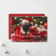 Celebre a temporada com a mais doce saudação de Natal! Este cartão de Natal apresenta um adorável pugzinho usando um chapéu de Papai Noel, envolto em fita vermelha festiva e sentado em frente a uma árvore de Natal brilhante. Perfeito para amantes de cães, donos de pug ou qualquer um que aprecie um toque de fantasia durante as festas. Uma maneira encantadora de espalhar alegria, este cartão é ideal para amigos, familiares ou colegas de trabalho, garantido a trazer um sorriso!