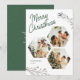 Moderno 3 Fotos de Natal Saudando Carro Feriado. Uma simples mudança de imagem com a sua. Personalize o cartão com sua saudação personalizada, seu nome de família e ano para um toque pessoal. A parte de trás do cartão mostra sua mensagem sincera em texto branco colocado em um fundo verde profundo com os flocos de neve caindo.