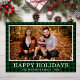 Esta maravilhosa fotografia de Natal tem sua foto favorita, xadrez de búfalos verde e preto, seu nome de família, o ano, e as palavras "Feliz Férias" na frente em branco e uma xadrez de búfalos verde correspondente na parte de trás. A fonte é nítida e limpa, fazer que a placa parece moderna, mas tradicional.