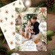 Um feitiço inspirou um quadro de pinheiros, ornamentos e estrelas à volta da sua foto favorita neste charmoso design. Um padrão de estrelas dançarinas, folhas e fogo enfeita o lado de trás. Você pode adicionar fotos e texto no verso.