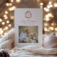 Feliz Natal, quadro botânico Vintage, cartão com fotos de férias. Recursos, tipografia vermelha rustica com 2 espaços de modelo de foto.