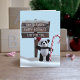 Papais noeis Panda viajou ao Polo Norte para dar sua bengala doce aos Papais noeis reais. Adicione seu próprio texto ao sinal e uma saudação de dentro também.