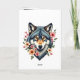 Cartão dobrado floral de Ano Novo do lobo, elegantemente projetado com cabeça de lobo e flores,