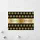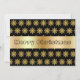 Este cartão de Natal elegante apresenta um fundo preto com um padrão dourado. No centro do cartão, o texto diz, "Feliz Natal". No verso do cartão há uma caixa de texto. Você pode adicionar seu texto aqui ou remover a caixa de texto para escrever à mão sua mensagem de Natal.