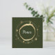 Divulgue a mensagem de paz nesta época de festas. Bela estrela dourada moderna rodeia a palavra Paz. Fundo verde. Adicione sua mensagem pessoal. Cartão perfeito para enviar a familiares e amigos para que saibam que você está pensando neles durante a época de festas.