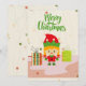 Feliz Natal O Elf Bonito Dará um Cartão de Férias Anime sua família e amigos com este lindo elfo. O icônico personagem de Natal que se encontra sobre um fundo criativo de estrelas flocos de neve com presentes coloridos apontando para elas. Você pode personalizar o design e mover os elementos como quiser.