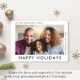 Cartão de Natal moderno com sua foto e "Feliz Feriados", "Que Seus Dias Sejam Felizes + Brilhantes" e seu nome em uma simples tipografia.
