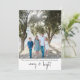 Cartão com fotos minimalista com sentimento de "Feliz e Brilho". Uma foto principal na frente e duas fotos menores, mais espaço para uma mensagem pessoal na parte de trás.