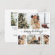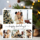 Feliz feriado de caligrafia Elegante Script de imagem minimalista de preto e branco 4 Folga de fotos Feliz Cartão de Férias de Natal Feliz. Este modelo de cartão de feriado festivo, mimalista, cômico, de quatro (4) fotos apresenta uma bonito colagem fotográfica e diz "Felizes Feriados", que saudam o texto escrito em um belo tipo de letra de rabo-de-coleira giro, com letra escrita à mão. No lado inverso, saudando o modelo de texto com um pequeno rabisco cardíaco em branco e um modelo de foto horizontal. Bonito cartão de boas-vindas para sua família e amigos no Natal.