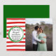 Este cartão de feriado da família apresenta listras pintadas vermelhas e um medalhão com a frase "Extra Cheer este ano!" (ou qualquer frase que você queira) no meio. Uma foto da família fica no lado direito do cartão. Contacte-me se pretender obter ajuda para formatar o texto ou a fotografia deste cartão de férias.