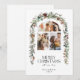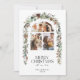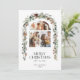 Cartão de Férias Lotus Pods de Colagem de Fotos Natal 3. Belo cartão de Natal com um arco com três fotos emparelhadas com a real cor da água, a cor vermelha, o verde de inverno e a coroa de pinho em cones. Toque natural russo nos seus cartões de Natal.