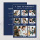 Cartão de Feriado Moderno de Colagem de Fotos. Elevem seus sentidos sentimentos com nosso cartão de feriado personalizado de 'Um Ano para Lembrar'. Este na moda, que apresenta uma fonte de máquina de escrever e espaço para 8 fotos da família, é uma combinação perfeita de nostalgia e estilo. O texto branco sobre fundo azul marinho amplifica seu apelo visual. Personalize e faça suas memórias eterno!