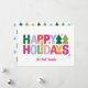 Cores não tradicionais combinadas com um tipo divertido dão a este cartão de férias vibrações retrô.