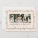 Envie desejos calorosos e recém-casados aplausos com este cartão festivo de férias com a frase "Casado e Brilho". Mostre três das suas fotos favoritas de casamento, maravilhosamente emolduradas por uma borda de cor d'água pintada à mão de toques de pínus e bagas vermelhas para um olhar que é romântico e sazonalmente chique. Perfeito para comemorar sua primeira temporada de festas como um casal casado, este cartão é totalmente personalizável — troque fotos, mude as cores, atualize as fontes e personalize a saudação para se adequar ao seu estilo. Uma maneira alegre de compartilhar sua história de amor e seu espírito de feriado, tudo em um belo manejo.