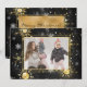 Flocos de neve Dourados sobre fundo chic. Este é um cartão de saudação sazonal. Adicione suas fotos da família favorita para personalizar esta beleza. Mude os nomes e o ano. Tão simples, mas chique.