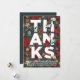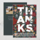 Este cartão festivo de feriado empresarial apresenta um fundo floral e verde de inverno com grandes OBRIGADOS. A frente também tem um ponto para o logotipo de empresa e para a mensagem do obrigado. A parte traseira apresenta uma foto da empresa, um logotipo e espaço para uma mensagem adicional.
