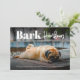 Este design apresenta um adorável pugzinho e as palavras "Bark Humbug" no topo. Personalize com uma foto do seu animal de estimação e sua mensagem na frente. Você pode colocar uma mensagem mais longa no verso ou deixá-lo em branco se preferir.