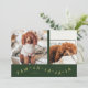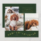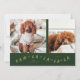 Cartão-modelo de fotografia de feriado mínimo e moderno com 2 fotos do seu animal de estimação na frente com um texto de tipografia divertido que diz "Paw-La-La-La-La." Você também pode adicionar outra imagem e mensagem no verso. O fundo é verde.