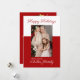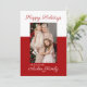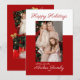 Um cartão de Natal moderno, com fundo vermelho e branco. Coloque a sua foto favorita na frente deste cartão de feriado e duas fotos no verso. Apresentando um belo roteiro de caligrafia para um visual moderno e elegante.