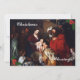 O design de Bênçãos de Natal apresenta uma reprodução da pintura "Adoration of the Magi" de Peter Paul Rubens como design frontal. As palavras "Bênçãos de Natal são apresentadas em texto branco e cursivo. O verso apresenta a frase, "Que a Santa Família te encha com amor e calor este Natal e sempre." em letras grandes verdes. Sua assinatura personalizável é exibida abaixo.