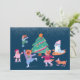 Celebre a temporada com nossa "Cartão de Feriado Plano Amarelo de Ice com Cachorros Bonitos", com uma deliciosa ilustração de aquarela e guache. Seis cães adoráveis — incluindo um poodle rosa, um velho cão de ovelha inglês, corgi, labrador e dachshund — graciosamente skate diante de uma bela árvore de Natal decorada, capturando o espírito alegre do inverno. Colocado contra um fundo azul escura festivo, este charmoso cartão traz um toque festivo aos seus cartões de natal, perfeito para amantes de cães e para quem aprecia uma cena de feriado balnear. Compartilhe um pouco de alegria com este cartão de férias cheio de coração!