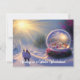 Cartão de férias de arte digital de fantasia bonita criado usando software de renderização de IA apresenta uma cena mágica de inverno com um globo de neve maior que a vida. Texto personalizável "caminhando em um país das maravilhas de inverno"