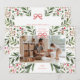 Um cartão de férias elegante com uma foto apresenta ilustrações botânicas originais em aquarela e uma fita vermelha no topo.