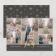 Mande desejos de Natal para sua família e amigos com este simples cartão de folha de ouro falso. Esta design de Cartão de Natal moderno tem uma colagem de 5 fotos na frente e um padrão de flocos de neve dourados no verso.
