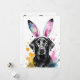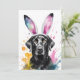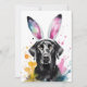 Laboratório preto bonito com orelhas de coelho da Páscoa em estilo de ilustração de cor d'água como coelho em treinamento.
