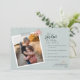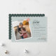Um cartão de feriado moderno com uma mensagem divertida que diz "estamos felizes nesta temporada de feriados porque" Personalize com sua preferência de cabeçalho (você pode substituir a palavra alegre), suas razões, nomes e fotos favoritas. Imagem verde a cores por Patty Brito em Unsplash
