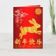Cartão de Férias Vermelho e Dourado do Ano do Coelho de 2023. Efeito digital dourado.