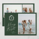 Feliz & Brilho, quadro botânico do Vintage, cartão de 3 fotos. Características, tipografia elegante em fundo festivo de cor verde.