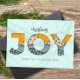 Design de Joy de Natal com letras de colagem recortadas num fundo de aquarela azul pálido. E é fácil editar (ou excluir) campos de texto mostrados para atender às suas necessidades pessoais. Perfeito para comemorações de Natal/Férias.