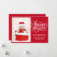 Uma maneira alegre de enviar saudações de férias para familiares e amigos! Apresenta uma citação moderna de "Temporada de Férias" em caligrafia sobre um fundo vermelho, personalizada com sua foto e nomes favoritos. Substitua a foto de amostra pela sua. Design©Rosalind Moore, Cherry Lane Designs